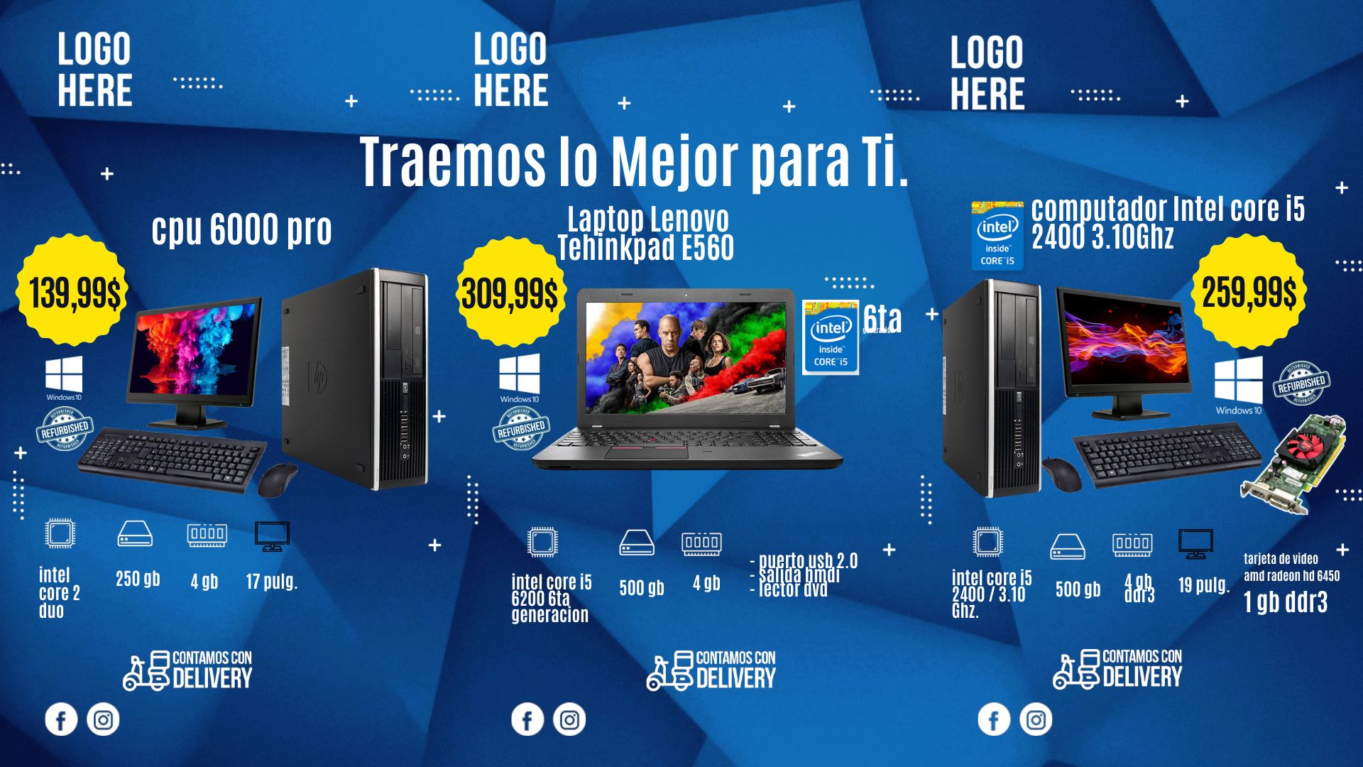 - Diseño Dual: Estructura visualmente balanceada para destacar tanto las ofertas de PC de escritorio como las de laptops.