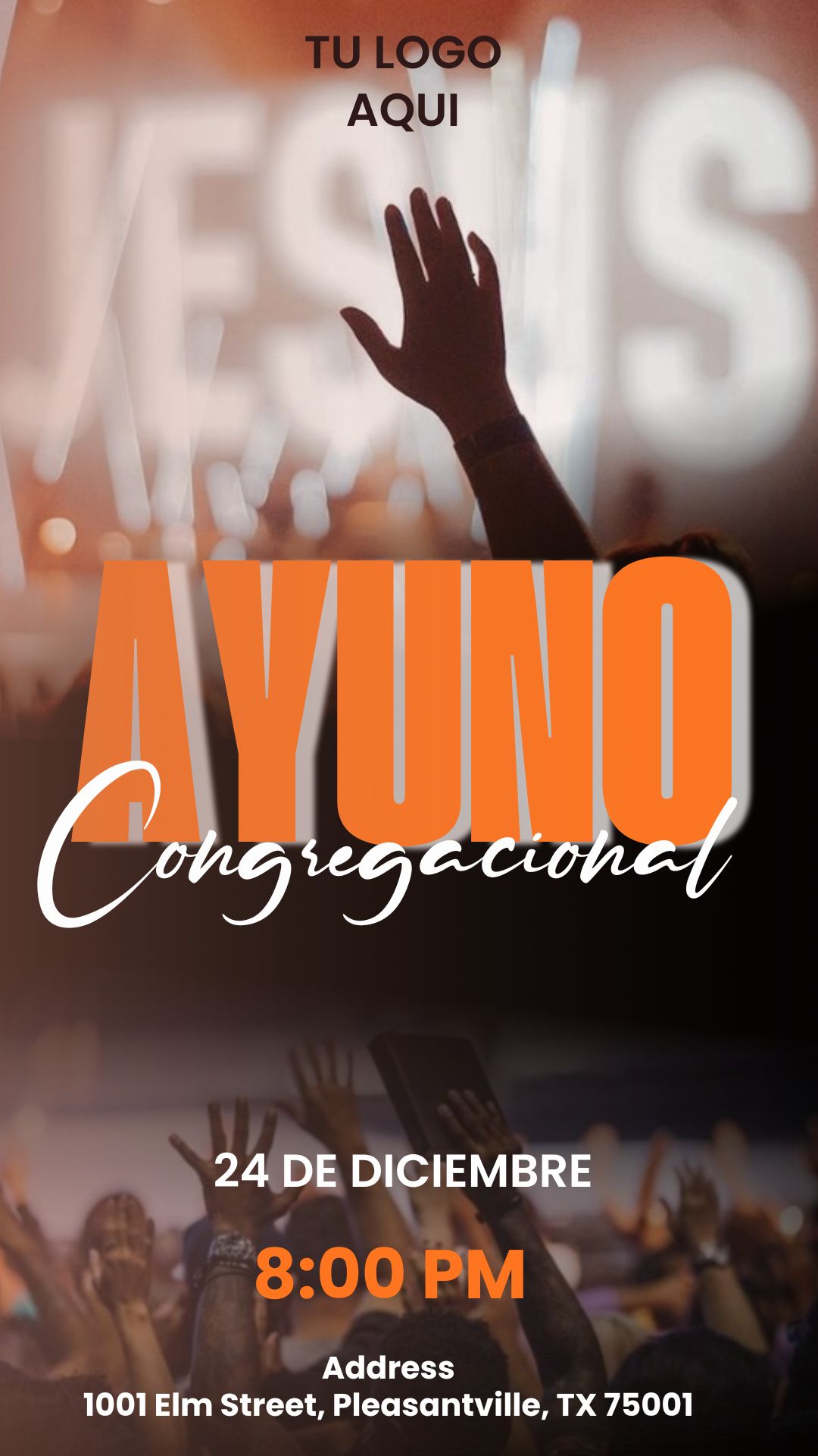 ¡Comunícate con fe y claridad! Descarga el flyer de ayuno congregacional editable en canva ahora y moviliza a tu iglesia a la unidad en oración.