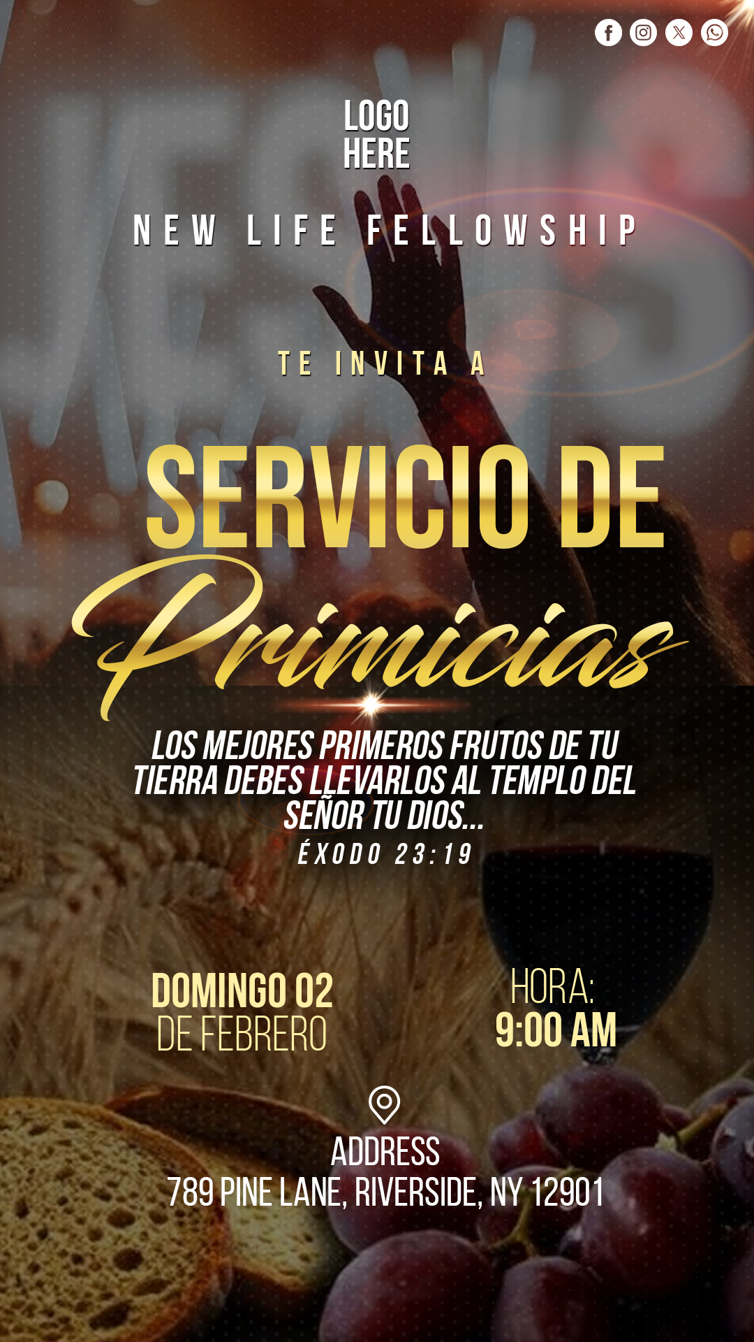- Espacio para Textos e Imágenes: Cuenta con áreas designadas para que insertes tu logo, imágenes impactantes y toda la información relevante de tu servicio de primicias.